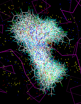 - Соединение воедино уже размещенных фрагментов мостиками из случайно выбранных фрагментов (если это возможно из пространственных и чисто химических соображений).