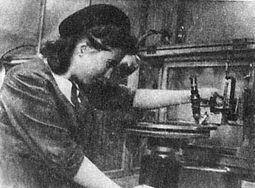 Оператор М. Кривулина в аппаратной воскозаписи (1943)